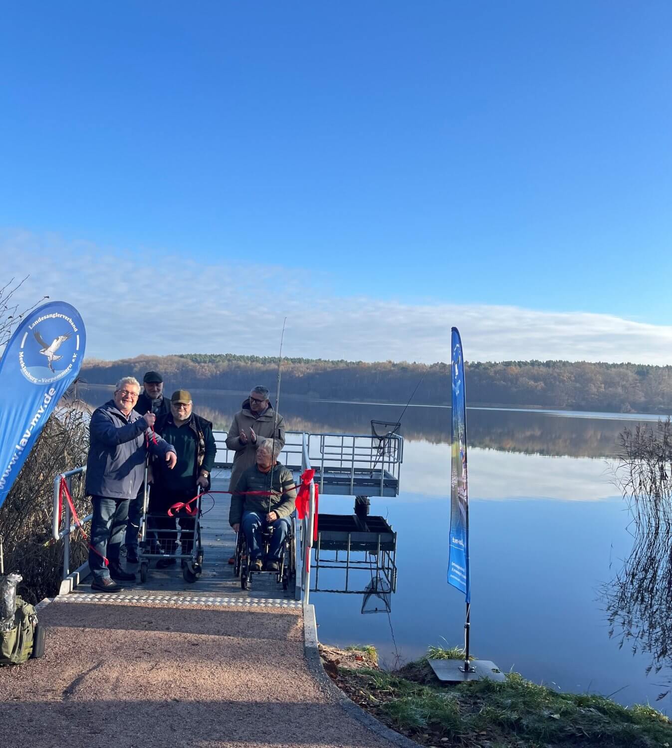 Einweihung barrierefreier Steg in Parchim am Wokersee im November 2025. Der Steg ist Teil des zukünftigen Projektes ANGELNfürALLE für barrierefreies Angeln des Landesanglerverbandes. Es wird gefördert vom Land M-V aus Mitteln der Fischereiabgabe. Foto: C. Thürmer